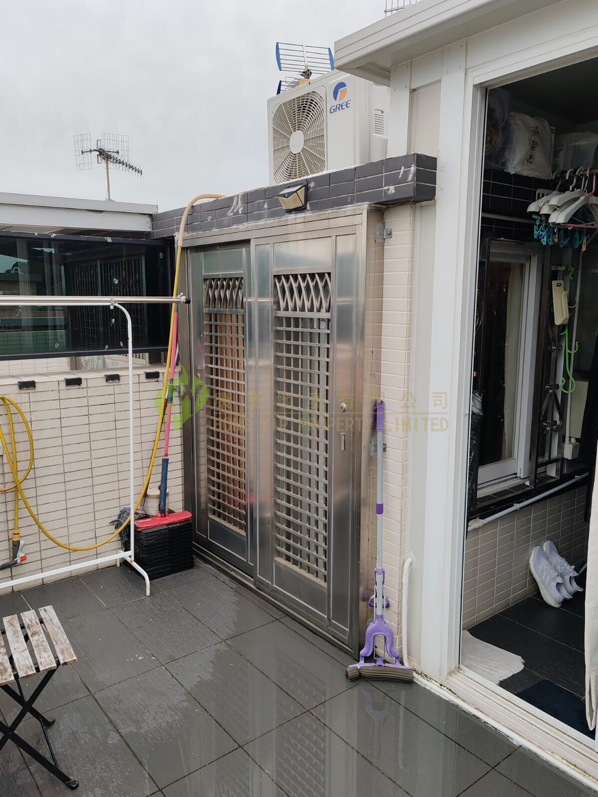 天台連太腸能棚及玻璃窗